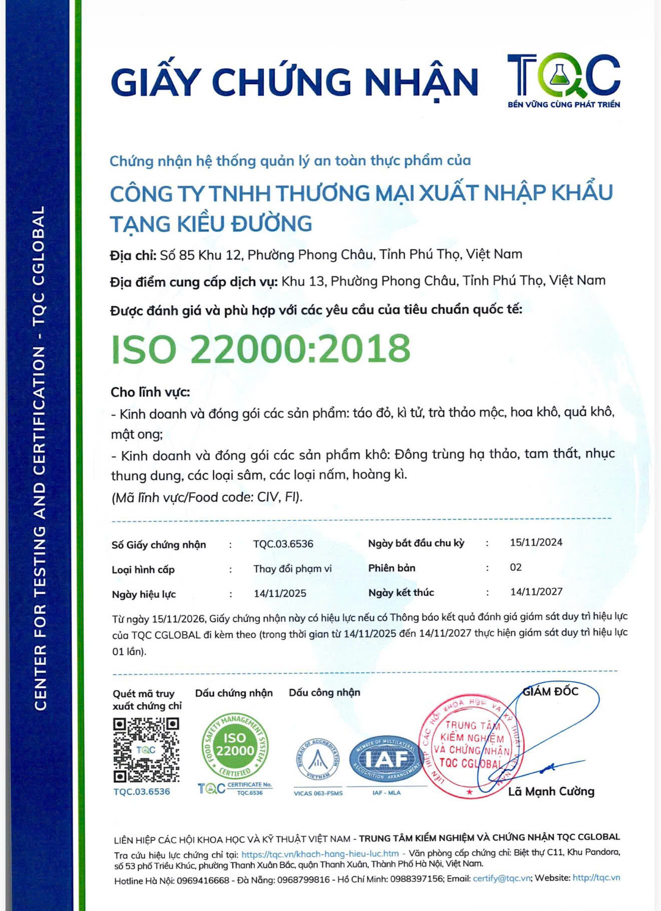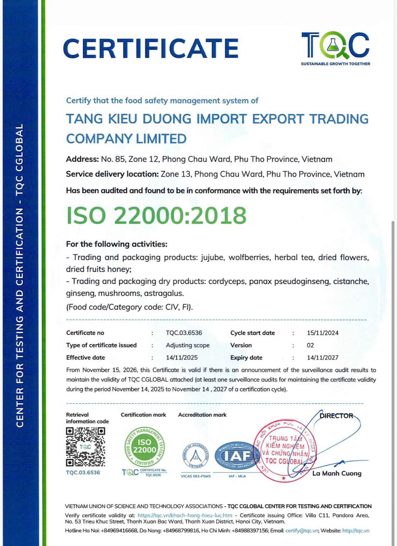 Tất cả các sản phẩm tại Tạng Kiều Đường 藏桥堂 phân phối đều đạt chất lượng kiểm định nghiêm ngặt tại cả Trung Quốc và Việt Nam về quá trình thu hoạch, sản xuất và đóng gói, an toàn cho sức khỏe người tiêu dùng, nói không với bất cứ loại chất bảo quản và phụ gia nào gây hại. Các sản phẩm từ dược liệu đến thuốc quý tại Tạng Kiều Đường đều có công dụng hỗ trợ và cải thiện tốt các loại bệnh khác nhau đã được hàng chục nghìn khách hàng Việt Nam trải nghiệm, tin dùng trong nhiều năm.