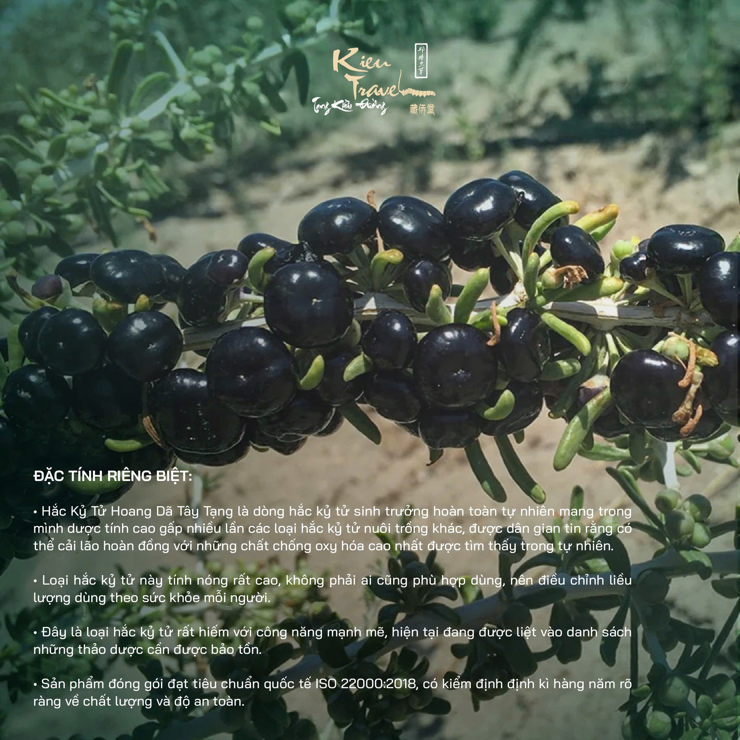 - . Hắc Kỷ Tử Hoang Dã Tây Tạng là dòng hắc kỷ tử sinh trưởng hoàn toàn tự nhiên mang trong mình dược tính cao gấp nhiều lần các loại hắc kỷ tử nuôi trồng khác, được dân gian tin rằng có thể cải lão hoàn đồng với những chất chống oxy hóa cao nhất được tìm thấy trong tự nhiên.