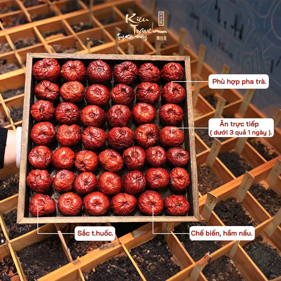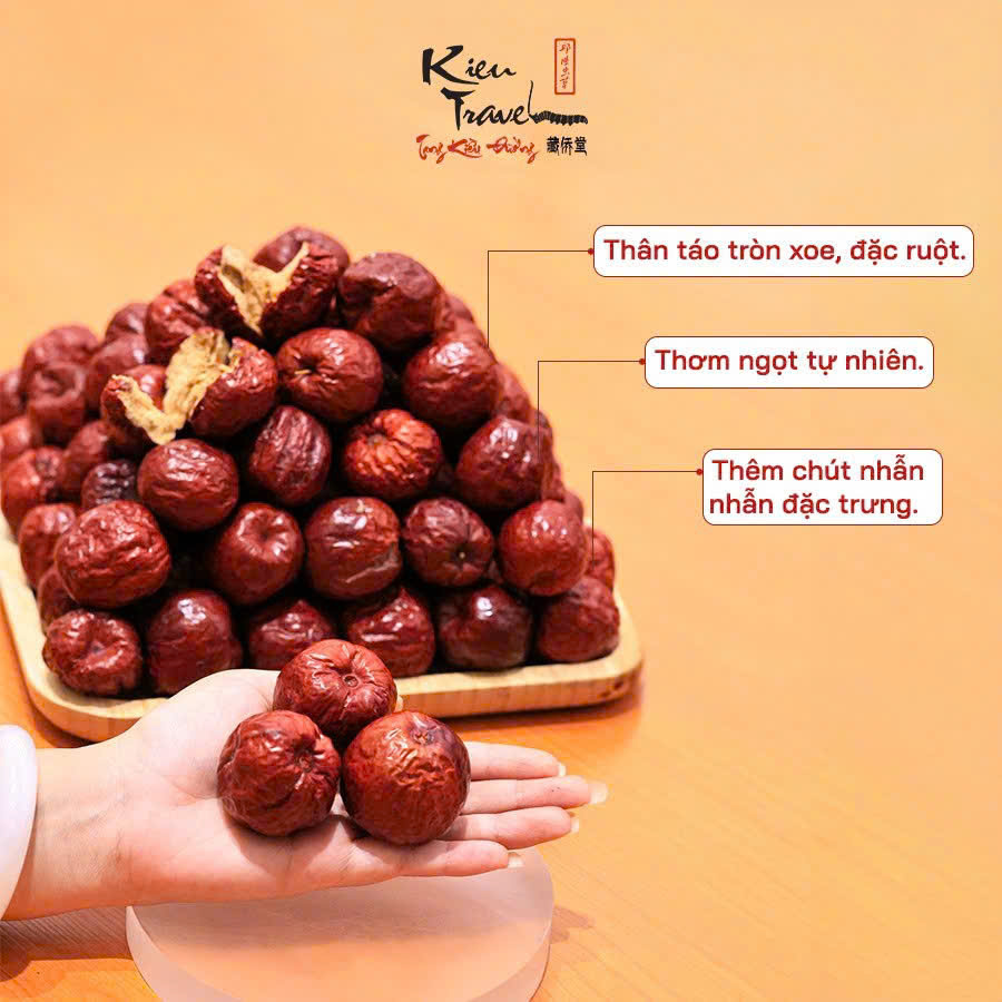 - . Đây là loại táo đỏ có dược tính mạnh mẽ hơn nhiều các dòng táo đỏ khác nên khi sử dụng sẽ thấy vị nhẫn đắng khá rõ rệt, phù hợp sắc thuốc, nấu nướng và những người có nhu cầu dùng táo đỏ đế cải thiện các vấn đề sức khỏe.